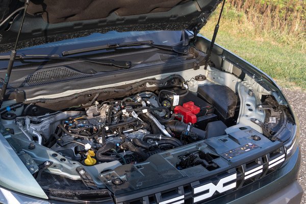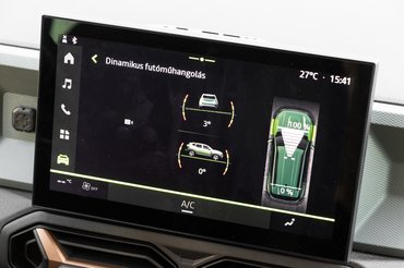 A tesztre érkezett motorváltozat az 1,2 TCe, ami ugyanúgy háromhengeres és turbós, de teljesen más felépítésű: ez már sima benzines, gázrendszer nélkül, közvetlen befecskendezéses, és van hozzá egy viszonylag névleges, 48 voltos mild hibrid rendszer, aminek a működéséből igazából nem sokat lehet érezni. Ez az egyetlen motor, amihez lehet összkerékhajtást rendelni, és mivel 230 Nm nyomatékot ad le 2100-tól, így munkagépnek valószínűleg ez lesz a legjobb, 1500 kilós vonóhoroggal megközelíti a B-kategóriás jogosítvány legnagyobb össztömegét, szűk 3,4 tonna lehet a menetkész állapotában 1,4 tonnás kocsi. Váltóból itt is csak a manuális, 6 sebességes van, 130 lóerővel az elsőkerék hajtású változat 0-100-as gyorsulása benéz 10 másodperc alá, összkerékkel még így is 11 másodperc, cserébe a 4x4 modellhez hátul is többlengőkaros futómű tartozik az elsőkerekesek sima, csatolt lengőkaros hátsó hídjához képest.