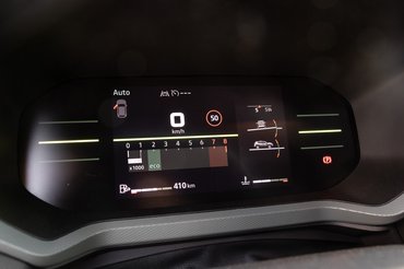 A típus történetében először megérkezett a digitális műszerfal, a 7 colos kijelző könnyedén vezérelhető a multikormányról, az viszont furcsán néz ki, hogy háromsávos ledcsíkokkal fedték el a brutálisan nagy oldalsó kávákat.