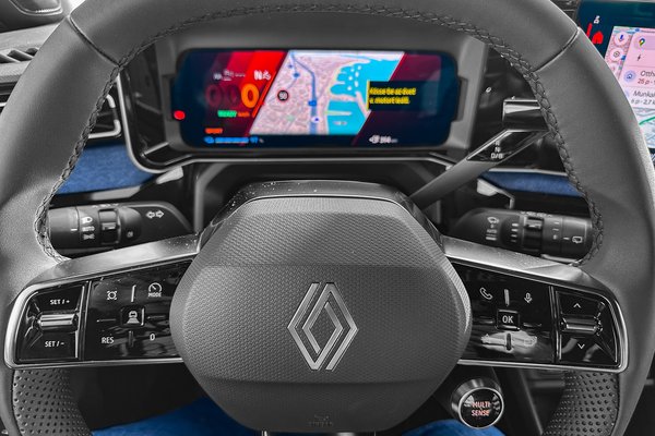 Érdekes (és biztosan egyre elterjedtebb) fejlemény, hogy kapott egy külön, nagyon jól elérhető, prominens gombot a vezetéstámogató rendszerek “testre szabása”. Azért tettem idézőjelbe, mert ez egy nagy, bűnös összekacsintás; mindenki tudja, hogy a gomb arra van, hogy a legtöbb autóban irtózatosan idegesítő, esetlegesen működő, de a törvény szava miatt kötelező segédleteket kikapcsolhassuk egyetlen gombnyomással a vérbe. Rögtön ott van a kezünk ügyében, olyan természetes lesz, mint régen az indítózás maga. Hogy mit lövünk le vele, az tényleg egyénileg beállítható. Lesz olyan, aki csak a sebességtúllépés miatti gongatást iktatja majd ki, más a sávtartást vagy a holttér-figyelést, esetleg a képzeletbeli frontális összeütközések miatti pánikordibálást. Van abban valami végtelenül ironikus, hogy kötelezően beépíttetünk és kifizettetünk a vevővel rendszereket, amik a gyakorlatban annyira irritálóak, hogy rögtön gombot is adunk a kikapcsolásukhoz, de ez egyáltalán nem a Renault sara, ilyen jelenleg a világ. Ez az egygombos megoldás igazából nagyon jó ötlet erre a groteszk idiótaságra. Fontos, hogy nem a vezetéstámogató rendszereket ekézem általánosan: ezek nagy része ténylegesen hasznos és életmentő, csak némelyik esetben kicsit előbb lettek kötelezőek, mint elviselhetőek.