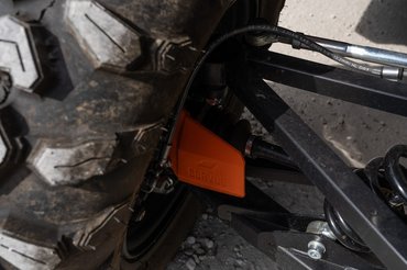 Tisztes vasakból egy igazán komoly független felfüggesztést szereltek a Corvus alá, elöl-hátul 287 milliméter rugóúttal – azért az már nem kevés. Ráadásul alulról elég masszív haspáncél védi a technikát, mellette pedig a féltengelyek gumiharangjai előtt is vaskos műanyaglemezek vannak, nehogy kiszúrja, kiszakítsa azokat valami. Alulról abszolút komoly technikának látom a DX4-et és kezdtem megérteni, hogy miért is viselkedik olyan jól terepen. Innen viszont pont a Yanmar dízelmotort nem láttam, a Corvus egyik legérdekesebb részét.