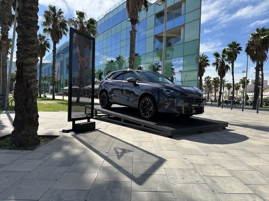 A hivatalos bemutatót az esti órákban tartották egy különleges helyszínen. Ahogy vitt a shuttle busz, eleinte csak romokat láttunk, omladozó vasbeton épületeket itt-ott kékkel kivilágítva. Aztán fényes kapuk, kivilágított Cupra-logók, elkezdett kirajzolódni a versenypálya. Az autók már ott sorakoztak, mindenki dörzsölte a tenyerét, de eleinte letereltek a lelátó aljába.