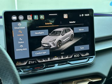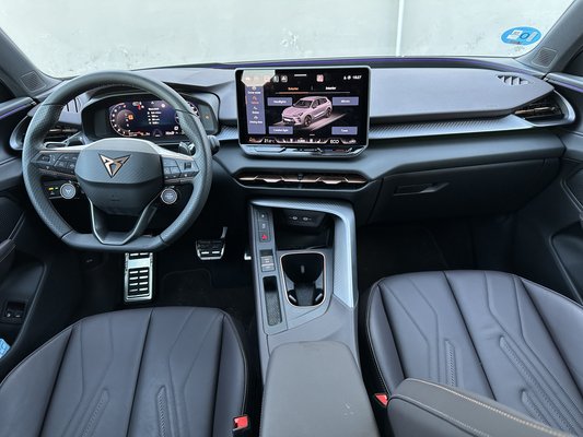 A Cupránál érezték, hogy a megszokott dizájn unalmas lesz, így faragtak egy saját multikormányt (fizikai!) gombokkal és tekerőkkel – kár, hogy ezt a klímapanelen nem tudták elsütni. A formák mindenhol a helyükön vannak, éppen annyi forró latin vérrel takarták be a német humortalanságot, hogy nem alszom el az unalomtól. Ehhez nem kellettek nagy dolgok, csak némi formatervezés és lehelletfinom LED-fények. Emellett a Cupra tudja, hogy nem csak kipufogás során keletkezik káros anyag és szennyezés, ezért mára már a legtöbb beltéri elem érintett valamilyen újrahasznosítási folyamatban. Használnak tengerből, óceánokból kihalászott műanyagot, újrahasznosított kompozitokat és olyan bőr huzatokat, amiket növényi alapú cserzési eljárással dolgoznak fel.