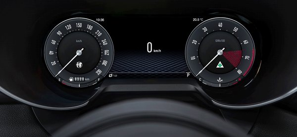 A facelifttel az analóg mérőket kiváltó digitális műszeregység néhány fokkal jobb, sokat dob rajta, hogy a három stílus/nézet között van egy dögös klasszikus – a Mustangnál csinálják ugyanezt, ott is működik. Teljesen igaza van a rajongóknak, amikor azt mondják, hogy mindez semmit nem számít, az Alfa Romeo nem egy tablet-márka, a gond az, hogy ez az autó itt, mármint az erősebbik benzines Tributo Italiano változat 24 millió forint, és 2024-re nagyon is eltechnobuzult közönségtől kéne elkérni ennyi pénzt – zseniális konkurencia ellenében.