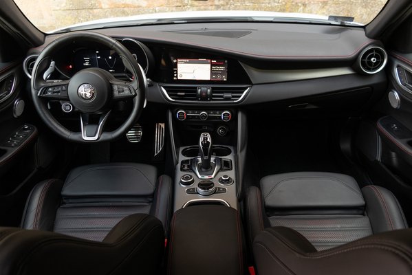 Illetve nem egészen múlt el, mert a 2024-es mainstream standardok szerint tényleg elavult a Giulia. A motor és a kardán között egy pici szicíliai bácsi ücsörög egy hokedlin, és ráérősen tologatja a fogaskerekeket az abakuszán, miközben a konkurenseknél kvantumszámítógép kapcsolgat szuperpozíciókat a sofőr testzsírszázaléka, a kormányszögek és a motor üzemállapota alapján. Pedig ugyanez a 8 sebességes ZF máshol tud ügyes lenni, de normál városi használatban, ebben az Alfában tényleg lassú és nehézkes, le van maradva tíz évet. De erre még visszatérünk.