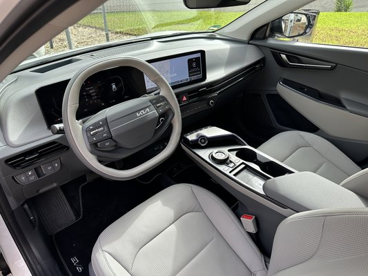 A beltérhez nem sokat nyúltak, aminek örülök, szerettem ez EV6 belső építészetét, főleg a lebegő középkonzolt. Említésre méltó azonban, hogy itt is egyre több az újrhasznosított és a környezetkímélő módon legyártott alkatrészek, huzatok. Az üléseken és a kormányon már csak vegánbőrt találsz, a szőnyegek újrahasznosított tengeri halászhálókból, míg sok műanyag elem újrahasznosított PET-palackokból készült. Bennem jó érzést kelt, hogy egy gyártó ennyire törekszik bizonyos természetes életterek megóvására, megtisztítására, ráadásul a Kiánál odafigyeltek a minőségre is, így a kényelemről sem kell lemondani. Abszolút nem érezni a beltéri elemek tapintásán a ragacsos műanyag palackokat vagy a halszagú szerszámokat, a felületek tapintása továbbra is kellemes és az összkép is jó.