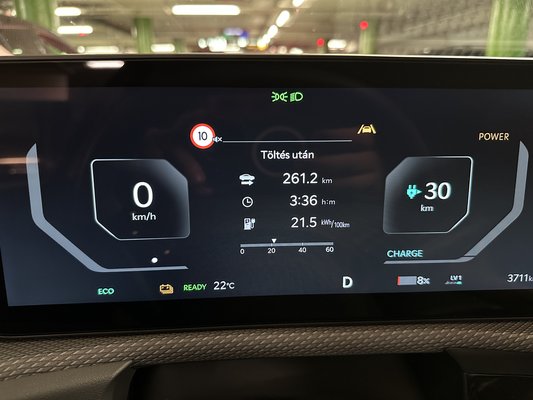 Visszafelé néhány szakaszon az autóra bíztam az irányítást, próbálgattam a vezetéstámogató rendszereket, de messze nem olyan kifinomultak, mint az EV3-ban, hiába csak három év telt el a két autó között. Elméletileg az EV6 rendszerei is frissek, mégis néha kockásan kanyarodott vagy későn, erőset fékezett, viszont nem szólt rám állandóan, hogy fogjam a kormányt. Hiába ő vezet, egyelőre nem szabad tartósan elengedni, viszont az EV6 kormánya már érintésérzékeny, tudja mikor és hol fogod. Emellett az autó figyeli előre a kanyarokat, ha úgy érzi, hogy a tempomatra beállított sebesség már nem biztonságos, akkor automatikusan lassít.