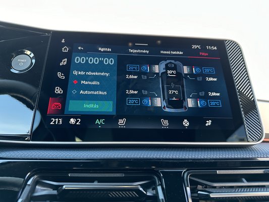 Nemcsak ebben merül ki az Alpine élmény, a fedélzeti rendszeren egy rakás jópofa funkciót helyeztek el, kezdve a telemetriával: élőben látjuk a főbb komponensek és a gumik hőmérsékletét, de nézhetjük a G-erőt és különböző kihívásokat is teljesíthetünk – mint egy autós játékban. Egyébként maradt a Google alapú rendszer, aminek köszönhetően a navigáció Google Maps, sőt, a Google Play áruházból is tölthetünk le hasznos applikációkat. Az egyetlen kiábrándító tétel a tolatókamera képe: mintha az autó ébredés után nem törölte volna ki a csipát a szeméből.