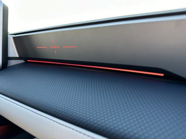 Nem így a hátsó sor, az tényleg csak szükségmegoldás, még magam mögött is csak összeszorított fogakkal fértem el, pedig a 178 centis magasságommal a középmezőnyt színesítem. A spéci bőrülések kényelmesek, a kormány fogása pöpec és néhány apró gaggel szépen ráfrissítettek az R5 E-Tech belterére. Míg a tabletek, a klímavezérlő és a multikormány is megmaradt, a középkonzolra például befaragták az A110-ből ismert menetmód választót. A kormányra felkerült egy RCH feliratú tekerőgomb, amivel a rekuperáció intenzitását lehet állítani, illetve a jobb hüvelykujjamnál ott van a már említett OV gomb. A műszercsoport grafikáján a háromszögek uralkodnak, piramisokon követhetjük a teljesítményt, a visszatermelést és a sebességet is, de kivetíthetjük ide a navit, gyorsításnál pedig úszó fények és száguldozó háromszögek segítik fokozni a 6,4 másodperces 0-100-at.