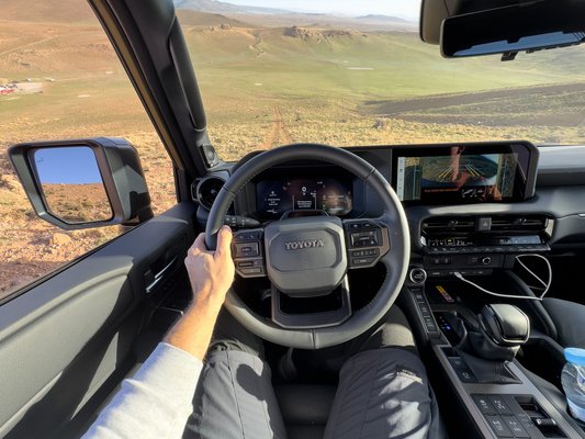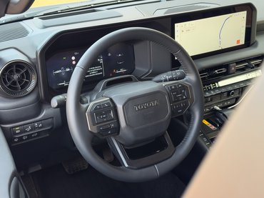 Kormányzása főként a terepen való könnyebb mozgás miatt lett elektromos, ezzel együtt viszont a vezetéstámogató rendszerekkel is kompatibilis, mint a sávtartó, és sebességtől függően változtathatja az áttételezést. Ezzel minden területen pontosabb és egyszerűbb vezethetőséget nyújt, amit minden tekintetben tapasztalhattunk is. Ha viszont a támogató rendszereknél tartunk, érdemes észben tartani, hogy a Land Cruiserben is szerepel már szinte minden, ami egyrészt kötelező, másrészt új. Vagyis a vészfékezőtől kezdve a holttérfigyelőkön és táblafelismerőn át a sofőrfigyelő kameráig tényleg minden.