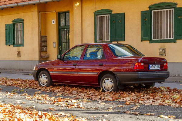Kár lett volna tovább koptatni a 20 500 kilométert futott fehér Skodát, meg amúgy is idős volt már, ezért 1994-ben lecserélték erre a mélybordó Escort szedánra, ekkor már nem Orionnak hívták. A Skoda azért maradt, 30 évesen OT rendszámot kapott és egy garázsban pihent az újabb Escorttal együtt. 94-ben valószínűleg még senki nem sejtette, hogy az újdonság még azt a csekély kilométert sem fogja megtenni belátható időn belül, amit elődjének kellett. Amikor Zsolt megérkezett érte 2024-ben, a mellé leterített színes szőnyegre lépett és felpattintotta a Ford ajtaját. 4780 kilométert mutatott az autó számlálója és30 éves volt.