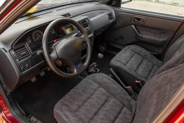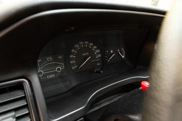 Hivatalosan egy év vagy 6000 kilométeres futásteljesítményig újnak számít egy autó, attól függ, melyik következik be előbb. Vagyis hivatalosan nem új autó, de tekintsünk most el ettől a formaiságtól, mert így is lehetetlenül újszerű állapotokat mutat az Escort most Óbudán, ahol végre személyesen is megtekinthetem a szobrot. Épp csak annyit használták, hogy évente eljusson a kötelező szervizekre és vizsgákra, folyamatosan forgalomban tartották, de extra módon vigyáztak rá. Ilyet tényleg csak az láthatott, aki a 90-es évek elején besétált egy Ford kereskedésbe.