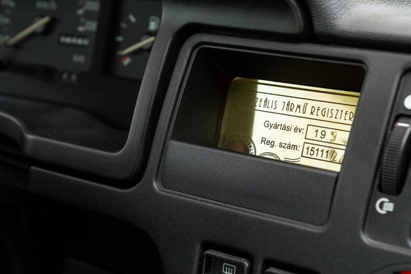 Mondjuk, erről itt aztán egy pillanatig nem beszélhetünk, mert a váltó gombján még ott az eredeti sorja és a műanyag kormány textúráján sem csúszik meg a tenyerem. Nincs beleragadt kosz a szellőzők tekerőkapcsolóinak felületén és a piktogramok fehérjét sem karcolták még körmök, hangosan rikítják felém harmincéves frissességüket.
