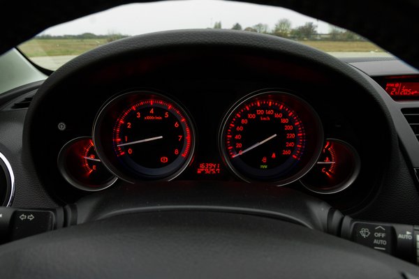 Aztán csak kerítettünk lehetőséget arra, hogy a 155 lóerős négyhengerest átmozgassam kicsit és a rikítóan piros tűt átbillentsem a számlap másik oldalára. Már 5000-nél olyan szépen szól, hogy rendesen megkívánom, és a teljesítménycsúcs 6500-as plafonján kicsit túl is billen a tiltásig. Micsoda hang! Pedig ez csak a kisebbik motor, a 2,5-es ennél még harcosabb, de ezzel én már meglennék, ha időnként megszólalhatna.