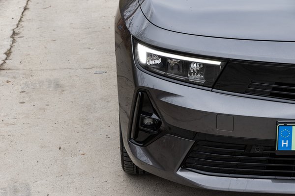 Az elektromos Astra esetében a tervezők nem bajlódtak azzal, hogy külsőleg megkülönböztessék a belső égésű motoros verziótól. Ugyanaz a lökhárító, ugyanaz a hűtőmaszk, csak a rendszám színe (főleg, hogy már a plug-in hibridhez is fehér színű jár) és a csomagtérajtó jobb alsó sarkában megbúvó e betű buktathatja le.