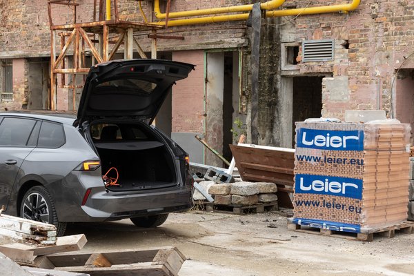 Ha igazán be akarjuk fogni munkára, akkor bátran (inkább ne) beletehetünk 36 darab Leiertherm 20 N+F téglát (ezt láthatjuk a képen az autó mellett), ugyanis az autó maximum teherbírása 440 kiló. De fizikailag belefér egy raklapnyi is (48 db), annak térfogata 1028,16 dm3. Sőt, egy EUR raklap is elhelyezhető a csomiba, mivel a kerékdobok közötti szélesség 1032 mm. Tehát nem vádolhatjuk az új Astrát azzal, hogy ez képtelen lenne arra, amire elődei.