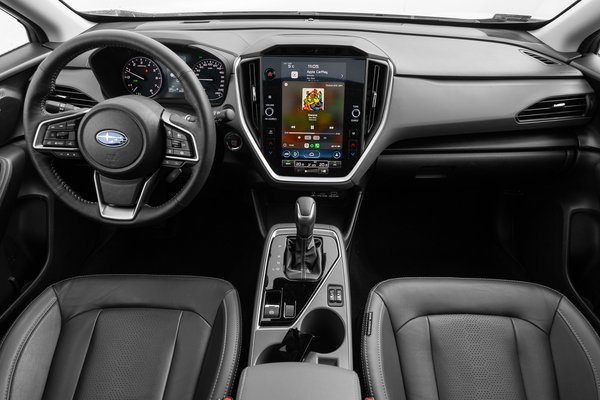 A kompakt Subaru belsejét meg se próbálták a manapság divatos irányelvek szerint kicicomázni: nincsenek kilométernyi LED-szalagok, tévényi kijelzők vagy minimalista nappalikra emlékeztető formák. A Crosstrek belülről úgy néz ki, mint a korábbi generációs Toyoták vagy Suzukik, ami ebben az esetben nem dicséret. Nem szeretem, amikor az autóipar a Razer és az Asus ROG cuccaiból merít ihletet, de azt se, ha ennyire megúszósan állnak a feladathoz.
