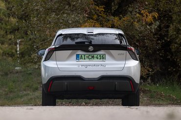 Ebben tárolnak kellő energiát, hogy az MG4 akár 450 kilométert is mehessen egy töltéssel. Ehhez a WLTP szerint 16 kWh/100 km-es fogyasztást kell elérni, ami finom lábmunkával teljesíthető, az autó elég hatékonyan mozog és rekuperáció nélkül úgy siklik, mintha szétkapcsolt volna a hajtáslánc. Ez több fokozatban állítható, a legerősebben például a fékpedált is alig használtam, de én jobban szeretem magamnak hangolni a visszatermeléssel járó lassulást. Az üzemi féket ritkán veszi elő az autó, pedig csupán egy villanymotor dolgozik a hátsó tengelyen.