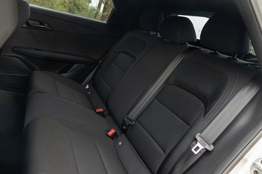 A letisztultságnak van egy olyan előnye, hogy a beltér tágasabbnak érződik, még úgy is, ha csak egy légypiszoknyi felületen használnak világos színeket. Elöl abszolút nem éreztem hiányt a térkínálatban és magam mögött is kényelmesen elfértem. A tetővonalat már csak a 363 literes csomagtér felett kezdték el lecsapni, ezért a hátsó fejtér is rendben van, bár az ülőlap elég közel van a padlóhoz, ezért a lábam magasabban van a megszokottnál. Pedig az MG kiemelte, hogy az MG4 padlólemezébe szerelt akkumulátorok rekordvékonynak számítanak az iparban: mindössze 110 milliméter vastag a nagyobb, 64 kWh-s egység, ezzel alacsonyabb, mint egy szabvány 0,33-as sörösdoboz.