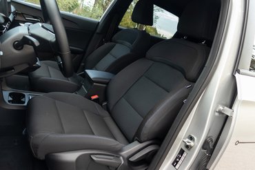 A tetővonal éppen több mint másfél méter, így a beszállásnál sem érezni a crossoveres formanyelvet, főleg, ha valaki magasra nőtt. Pedig neki lesz igazán kényelmes az MG4 sofőrülése, hiszen a biztonság érdekében magasra húzott övvonal és a meredek dőlésű szélvédő kissé tankos érzést kelt az autóban, ami az alacsonyabb sofőröknek nehezítő körülmény. 178 centis magasságommal a középmezőnyt erősítem, de nekem is pumpálni kellett a finomra párnázott szövetülést, mire egészségesen kiláttam a kormánykarima felett.