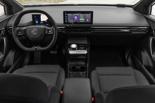 Nehéz egységet látni a kínálatba, főleg az MG4 lóg ki a sorból ékszerű orrával és meghatározhatatlan formavilágával. Van ahol crossoverként, van ahol kompakt hatchbackként hivatkoznak rá, és mindkettőben van igazság. A napjainkban divatos hobbiterepjárós vonalat erősítik az alulról magasra húzott fekete idomok, amik optikailag emelnek az amúgy szerény, 15 centis hasmagasságon. A kompakt hatchback formáért pedig elég ránézni: oldalról és srégen hátulról belelátni a klasszikus kompakt formavilágot, amit anno az első Golf hozott divatba és azóta sem kopott ki a köztudatból.