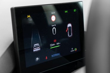 A menetmódválasztó kidolgozottsága meglepett, olyan mint egy szépen megmunkált alumínium henger, néha még a hideg fémet is éreztem az ujjaim alatt. Remek részlet ez, de nekem itt kifújt a kreativitás, és innentől csak az elvárt minimumot láttam mindenen. A táblagép menürendszerében könnyű elveszni, de ki lehet pakolászni gyorsan elérhető kezelőfelületeket, és néhány gomb is segíti a működést a kijelző alján. Sok szükséges funkció került az érintésérzékeny térbe, rossz úton egy egyszerű klímahangolásnál is kidagadt az ér a halántékomon, aztán elkezdtem összebarátkozni a kormány joystickjeivel.