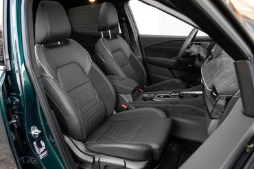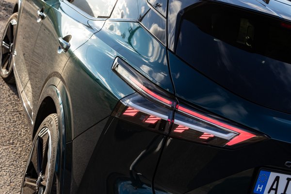 Először feketének tűnt a tesztautó, aztán a garázsban sötétkéknek, a napsütésben meg előbújt belőle ez a méregzöld csillogás. Ez az új Deep Ocean árnyalat, ami a modellfrissítéssel érkezett 2024-ben. Csodás szín, ha sikerül olyan időszakban meglátni az autót, amikor éppen kiadja az árnyalatot. Elég sötét így a rengeteg fekete kiegészítő elemmel, amelyek magasfényű lakkozott felületek, ilyen például a lökhárítók alsó része. Tisztán szép, de csak ha ragyog, viszont a legelső porszemtől azonnal koszosnak látszik.