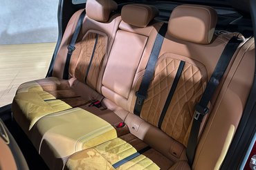 Statikus bemutató lévén nem vezettük az autót, illetve olyannyira előszériás darab lehetett, hogy talán nem is ment volna. Abban viszont biztos vagyok, hogy hosszútávú, nyugodt autózásra hangolták, így csenedes és finom autó lesz. Elöl hagyományos MacPherson, hátul pedig Multilink futómű dolgozik, arról azonban nem beszéltek, hogy lenne-e az autó alatt bármilyen légrugós vagy legalább adaptív csillapítási rendszer. Valószínűleg inkább az 50:50-es súlyelosztásra és a szűk két tonnás súlyra támaszkodnak a finom futás és a jó vezethetőség érdekében.