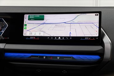 Ebben a beltérben az iDrive metszett üveg tekerője furcsa felnyújtott kéz azoknak, akik még kapaszkodnak a régi BMW-s megoldásokba, de valójában már tájidegen. Főleg, mert a 9-es iDrive most nőtt túl azon, hogy egy tekerővel ésszerűen lehessen használni. Én is azonnal nyúlok oda a kijelzőn, amit éppen kattintani akarok, eszembe se jut tekergetni, pedig az adna némi visszajelzést, minőségi kattanást, amire az ujjbegyeim reszketve várnak, csak már haszontalan.