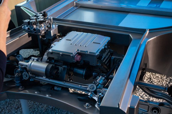 A következő újítás a világ első sorozatgyártású 8 az 1-ben elektromos hajtáslánca, ami egy csomagban tartalmazza a járművezérlő és az akkumulátorvezérlő egységet, az áramátalakítót, az áramelosztó egységet, a DC-DC fedélzeti töltőt, a motort és az erőátviteli rendszert, 95 százalékos hatékonyság mellett. Maga a villanymotor önmagában is különleges. Percenkénti 23 ezres fordulatszámával a világ legnagyobb sebességű tömeggyártott ilyen egységének számít, ami ennek hála 10 százalékkal nagyobb teljesítményre képes, miközben 1,5 százalékkal hatékonyabb.