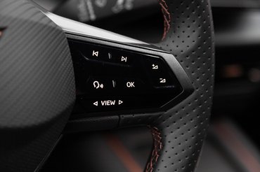 Bár a két autó belül is hasonló, pont annyit finomítottak a Cuprán, hogy a júzernek a behuppanás pillanatában ne a spórolás jusson eszébe azonnal. Príma az egyedi kormány, nagyszerűek a húsos sportülések, menők a mintás dekorbetétek. Éppen annyi elemet fújtak bronzra, amennyi még nem tolakodó, a szürke mű-Alcantara és a színes dekorvarrás is rokonszenves.