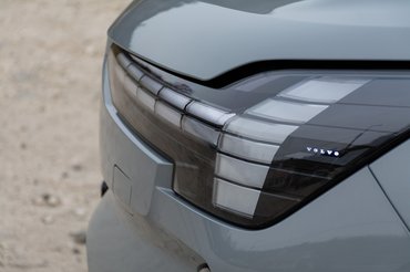 Nagy a hasonlóság, de ha jól megfigyeljük a részleteket, kiderül, hogy a Volvónál van igény újításra. Szinte minden területen továbbléptek, és volt idejük megfontolni a dolgot, nyoma sincs kapkodásnak, csapongásnak. Az alakját megtartották, szerencsére hasonlóan nagyok az ablakok, mint az XC90-ben, és továbbra sem érezték fontosnak a magamutogatást, giccs és csicsa még mindig nem szerepel az eszköztárukban. Más elektromos Volvók mintájára a krómozott hűtőrácstól is megváltak, a leglátványosabb dizájnelem a pixelekből kirakott Thor kalapácsa fényszóró.