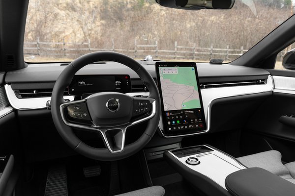 A belső kialakításhoz a külsőnél merészebben nyúltak hozzá, mégis láthatóan ragaszkodtak a bevált, skandináv felfogáshoz. Valamiért több autógyártó is kényszert érez arra, hogy a Tesla megoldásait szolgaian lemásolja. Nem a legfontosabbakat, hanem a legfeltűnőbbeket, az árnyékoló nélküli, fix üvegtetőt, vagy a szinte teljesen gombmentes műszerfalat. Mivel a két belső hangulat között nagy az átfedés, a Volvo lelkiismeret-furdalás nélkül válthatott az eddig megszokottnál is letisztultabb látványra. Ez sokak szerint önmagában igényes, de az XC90 után csalódást keltő.