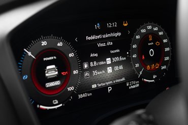 Takaríthatnám a zongoralakkal leöntött menetmódválasztót, a klímapanelt vagy a fedélzeti számítógép gyorshívóit. A körítés bár mindenhol kellemes, a kezelőfelületek gyűjtik az ujjlenyomatokat. A legkevésbé problémás felület a hírhedt multikormány, aminek nem csak a kezelőfelülete logikus és egyértelmű, de az ergonómiája is kiváló. Kellenek is a gombok, hiszen sok idegesítő extrát a kormány mögötti kijelzőn lehet kikapcsolni. Balra kettő, lefele öt, jobbra-jobbra, majd megint kettő le és valahol ott van a táblafelismerő. Precízen megtanultam a lehető legrövidebb utat a kikapcsolásához, hiszen gyakran fantomtáblák alapján gondolt notórius gyorshajtónak és az agytekervényeimig hatoló csipogással büntetett.