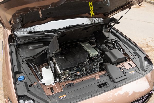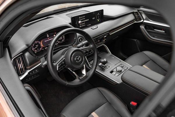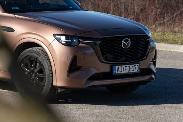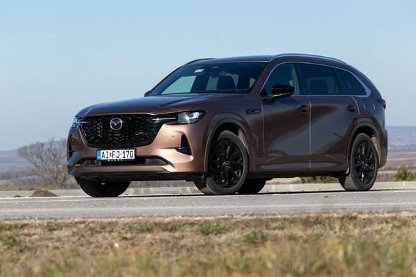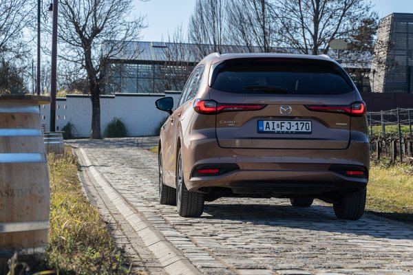 Nagy lökettérfogatból nem túl sok lóerőt, 254-et hozott ki a Mazda, az 550 Nm nyomaték már komolyabban hangzik. Kevésbé az erő, inkább a hatékonyság és a fogyasztás a szempont, ami gyárilag 6 liter alatti érték, a valóságban pedig 7,2 liter tankolás szerint, ami kimondottan jó, főként városi használat mellett. Ugyanezzel a motorral CX-60-ban sikerült 3,4 litert fogyasztani tankolás szerint spanyol hegyvidéki utakon, szóval tényleg döbbenetesen takarékos.