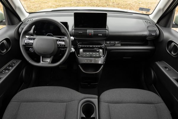 Méreteit a már kifutott, de itthon is óriási mennyiségben látható Volkswagen E-Uphoz hasonlítanám, az Inster lényegesen hosszabb, a csomagtere tágasabb, cserébe keskenyebb és valamennyivel magasabb, tehát tényleg igazolja, amit a szem először észlel belőle, formailag pedig a markáns, lépcsős, bakancsos orr jelenti az egyik legfőbb különbséget ahhoz képest. Ilyen szempontból sokkal inkább hasonlít a korábban említett Ignisre, vagy az előző Pandára. A számok érdekessége, hogy még a korábban említett Spring is szélesebb valamennyivel az Insternél, de tényleg csak árnyalatnyi az eltérés, senki ne gondolja, hogy az i-Miev vagy a C-Zero szélességi osztályában kell gondolkodni.