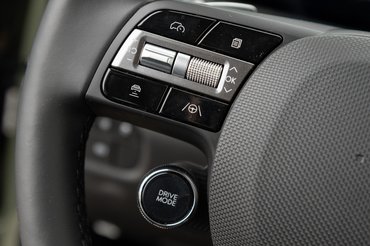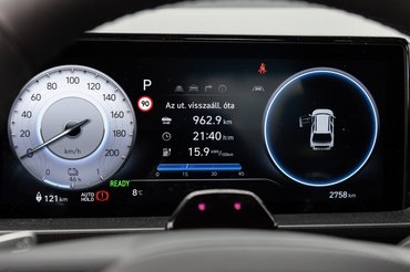 Használati egyszerűség szempontjából a hagyományos klímapanel, a megannyi fizikai gomb és a látható helyre pakolt csatlakozók egyaránt segítenek, egy bosszantó dolog viszont maradt: a Hyundai továbbra is ragaszkodik a bekapcsológombhoz, illetve a külön gyújtás intézményéhez. Rendes metodikát kell megtanulni a beindításra és a sebességváltó használatára, amikor pedig csak tölteni akarsz, akkor szintén meg kell tanulni, hogy melyik állásban mutatja a töltés állapotát, sebességét és a feltöltött állapot várható bekövetkezését. Ez utóbbit egyébként nehezíti, hogy a töltőcsatlakozó mellett csak egy sima világítás van, állapotjelző nincs, tehát bedugtam az autót, megnéztem a töltőoszlopon, hogy minden stimmel-e, beültem, fék nélkül megnyomtam a bekapcsológombot, hogy csak gyújtás legyen, és lássam a töltést, majd szintén fék nélkül kinyomtam, hogy ne akarja beindítani az autót, hanem elaludjon. Ezek után még egyszer megnéztem a töltőoszlopot, bezártam, és már mentem is tovább, mi sem egyszerűbb. Persze a Hyundai BlueLink szolgáltatással okostelefonos alkalmazásból is nyomon lehet követni a töltést, ez az aktiválástól számított egy évig ingyenes.