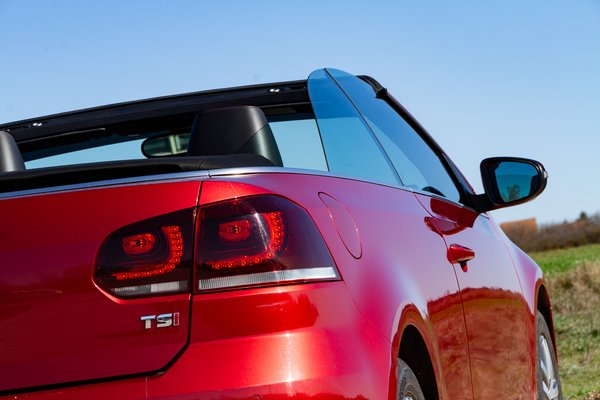 Elsősorban ez már nem olyan füleskosár jellegű kabrió, mint az elődei. Megvan annak is a romantikája, de nem a stílus, hanem a funkció miatt kellett korábban, a VI-os Golf idejében már pirotechnikai eszközökkel, boruláskor kiugró bukócsövekkel tudták ezt helyettesíteni.