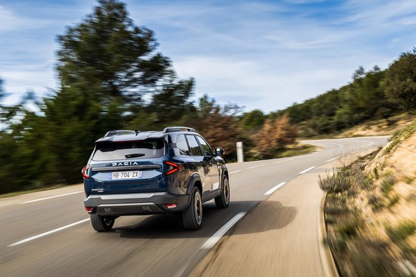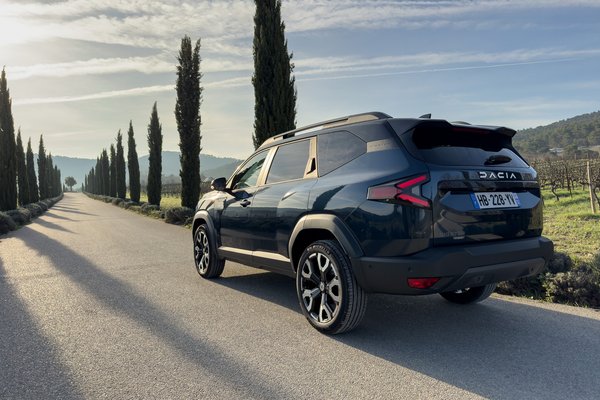 A formavilág harmonikus és még jobban is áll neki a hosszabb test, mint a Dusternek. Határozott és vagány, tele kimondottan jó részletekkel. Rendesen sokáig kerülgettem a Provence-i reggeli napsütésben, és semmilyen szögből sem béna vagy esetlen. Más az első lökhárítója, de nagyon hasonló, hátul pedig praktikusan nincs fényezett elem sérülékeny helyen. A komplett hátsó lökhárító a Sparkle nevű műanyagból készült, ami 20 százalékban tartalmaz újrahasznosított műanyagokat, ez került az autó oldalára is.