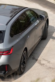 Hathengeres dízel 5-öst kizárólag mild hibridként, automatával és összkerékhajtással lehet kapni, ráadásul az új generáció pár centi híján már akkora, mint egy előző generációs 7-es, tehát minden lényeges részlet felfelé srófolja a súlyát. A G60/G61-es 5-öst pluralista hozzáállással tervezték, vagyis minden típusú hajtáslánccal kínálják, köztük elektromossal is. Az i5-ösnek viszont anélkül kell befogadnia az akkupakkot, hogy az észrevehető teret venne el az utasoktól, így az autó nem tud különösebben alacsony maradni, a 1,51 méteres magasságát a fekete szoknya mellett csak az rejti el, hogy több mint 5 méter hosszú. Ennyi légköbméterrel bocsánatos bűn nehéznek lenni.
