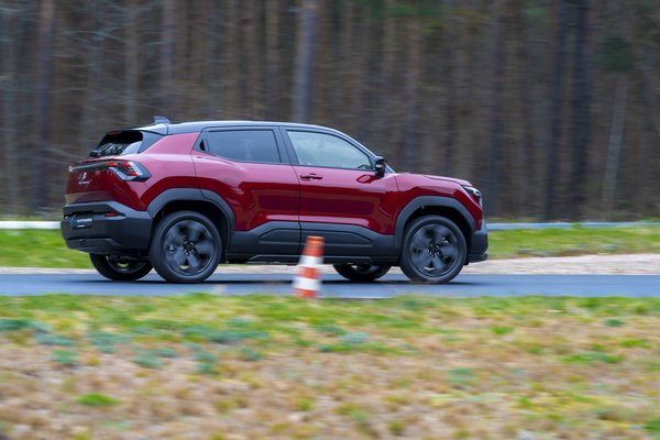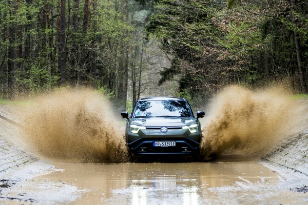 Míg a versenypályán precíz, alapvetően nagyon sportos hangolásúnak érződött az e Vitara, hasmagasságával és terepszögével a telekjáró célközönséget is megszólítja. A gyáriak kifejezetten méltatták az aszfalton túli képességeket, minket pedig egy enyhén saras pocsolyába küldtek be az összkerekes e Vitarákkal – nyilván egy olyanba, ami az autónak nem volt nagy kihívás, és mi azt éreztük, hogy akár egy normál képességű autónak sem lenne az, cserébe viszont előtte-mögötte, laza talajon is ki tudtuk próbálni a menetdinamikai segédjeit. Nagyon finoman, alulról építkezve ereszti rá a teljesítményt a két tengelyre, így ha egy nagyon kicsit komótosan is, de magabiztosan, nem darálva, a sofőrt meg nem ijesztve viselkedik.