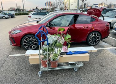 Bár a csomagtartó térfogata csak 360 liter – enyhe hibrid nélküli változatoknál 430 – a nyílás nagy, ezért jól pakolható. Szedánoknál nem evidens, ezért érdemes kiemelni, hogy lehajthatók a hátsó üléstámlák, így a 2-es hosszabb tárgyak szállítására is alkalmas. Ezt gyakorlatban is teszteltem: a 220d lazán elnyelt egy 190 centis ikeás Lack polcot és egy 2x4-es Kallaxot, miközben az első ülések mögé simán beékeltem két öles Monstera filodendront is.