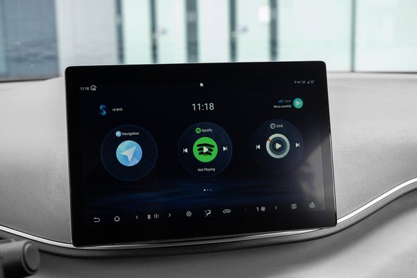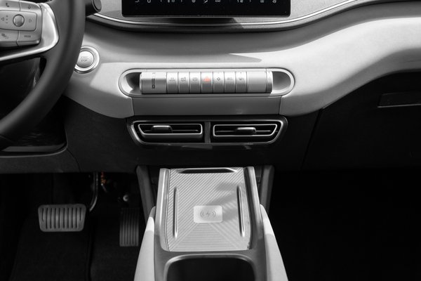 A külsőnél a beltér egy fokkal fapadosabbnak érződik. Nagy baj nincs, de érezhető, hogy egy olcsó modellről van szó, amit sem dizájn, sem anyaghasználat tekintetében nem gondoltak túl. Viszonylag sok a műanyag, de jó hír, hogy a korábban említett, a műanyagnál jobb tapintású vegán bőrből is akad, főleg ott, ahol sokat pihen az ember keze. Az infotainment rendszer kifejezetten gyorsnak és reszponzívnak tűnt, a kijelzők minőségén azonban érződött, hogy olcsó autóban ülünk. Ez kifejezetten a digitális műszeregységnél feltűnő, amin közelebb hajolva meg lehet számolni a pixeleket.