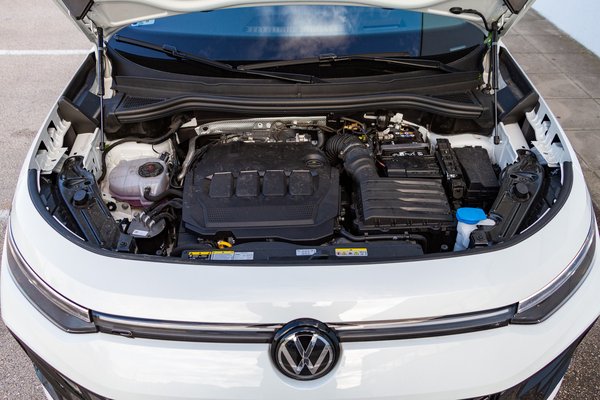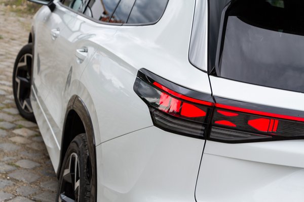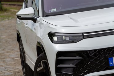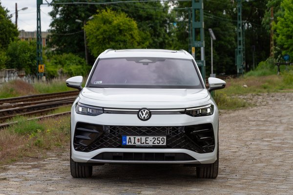 Ezt a minden irányból egységesnek látható formavilágot reszelgeti a VW az ID.3 óta, pedig a Tayron sem tartozik a villanyautók közé, a kínálat mégis így harmonikus. Azonnal felismerhetően Volkswagen, és ez itt a kulcs. Kitagargatós LED fényszóróiban egyenként 19 200 dióda fénye világít és variálja a fénykéve formáját a pillanat tört része alatt a környezetnek megfelelően, ezeket az IQ.Light lámpákat a fehér belső idomjairól is fel lehet ismerni.