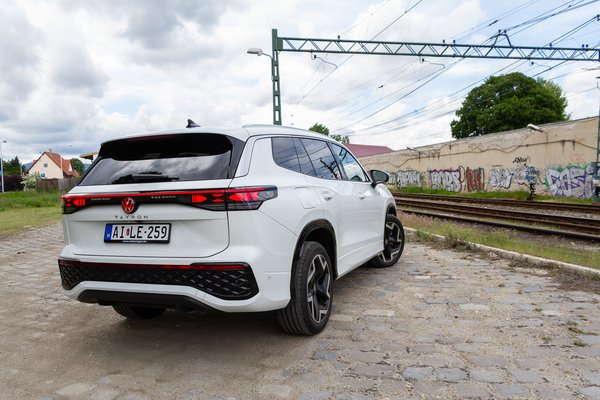 Ezekre az utakra nem lehet felkészíteni futóművet, annyira szélsőségesen ótvar szakaszok vannak Budapesten belül is, amin nem lehet normálisan közlekedni. Ezt sikerült egész jól megugrania a Volkswagennek a Tayronnal, mert a rugózása a 19 colos felnikre húzott egészen magas falú gumikkal kiválóan passzol a helyzethez. Feszes, mégis kimozogja a lehetetlenül nagy és éles hibákat. Ebben új fejlesztésű dupla szelepes lengéscsillapítók segítik, a végeredmény pedig érezhetően komfortos futás pici ütésekkel és egy csendszobával.