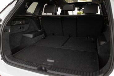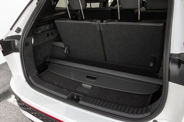 Öt- vagy hétüléses utastérrel készül, ha nem kérsz harmadik üléssort, 885 literes alap raktér a jutalmad. Ha Skoda Kodiaqot választasz, akkor meg 910, de maradjunk a Tayronnál, aminek hétüléses verziója járt nálam. Ebben 850 literes raktérrel lehet számolni lehajtott harmadik üléssorral, kinyitva pedig 340 marad, ami egy heti bevásálásra vagy hét ember egy-egy hátizsákjának így is elég. Külön okos megoldás, hogy a raktér rolójának van hely a padló alatt, az már csak kedves apróság, hogy ennek konzoljait filc betétekkel burkolták, hogy ne zörögjön menet közben.
