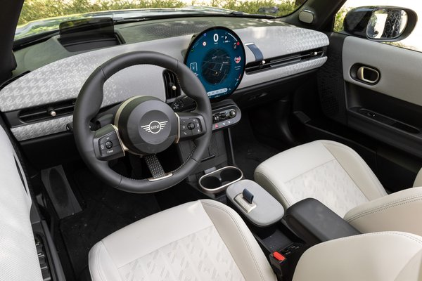 Furcsa kettősség a Cooper S kabrió modernség szempontjából, mert bár a letisztult, gyönyörű, kör alakú, közel 10 hüvelyk átmérőjű OLED kijelző önmagában lenyűgöz, és kifejezetten ötletes a különféle témamódokkal, a rendszersebessége közepes, a sofőr előtti műszerek helyett pedig kizárólag a füstüveges HUD-lapot lehet látni, ami elég múltidéző a mai, tisztán a szélvédőre vetített megoldáshoz képest.
