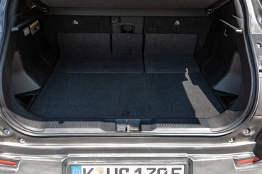 A kereken 2,7 méteres tengelytáv és a magas tető miatt hátul is értelmesen elfér egy átlagos méretű felnőtt: a 184 centimhez pozicionált vezetőülés mögött elegendő hely adódott. Praktikus funkció, hogy a hátsó ülések nemcsak lehajthatók, hanem előre-hátra tologathatók (a két oldal külön), így, ha nem kell lábtér, nőhet a csomagtér. Mondjuk erre szükség is lesz: a csumára előreküldött hátsó ülések mögött 310 liter a maximálisan elérhető térfogat.