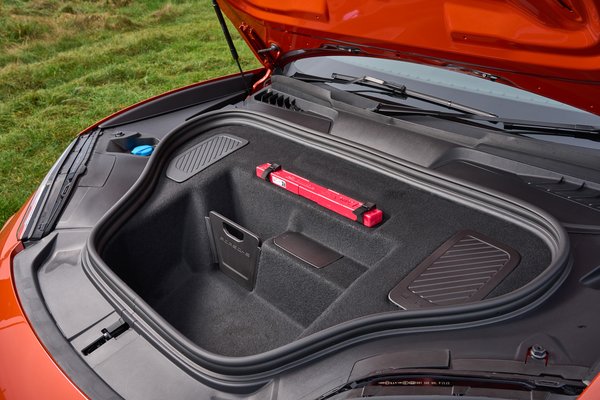 Tökéletes tartású ülésben ülök egészen magasan, de valahogy így is minden pont jó. Nem fészkelődöm sokáig, ami nagy szó egy elektromos SUV-ben. 130-nál is olyan csönd van, mintha csak 50-nel gurulgatnék. Kényelmes, komfortos, sokáig tudnék benne utazni, ha arról lenne szó, hiszen ez is a fő szerepe. Integetésre pattan fel az első csomagtérfedél és teljesen fel is nyílik. Itt 84, hátul pedig 480 liternyi térbe lehet rámolni a bevásárlást, vagy a nyaralós cókmókot, elölről hátra tökéletes családi autós dimenziókat hoz.