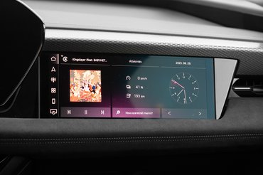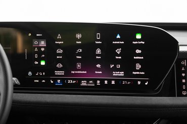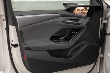 Kilincsei már sokkal direktebben reagálnak a Q6 e-tronhoz képest. Érzésre elég idegen, mert mikrokapcsoló sincs bennük, csak egy nyomásérzékeny lap a belső felén. Megszorítod és kinyílik. Szokatlan, de megalapozza az egész autó digitális érzetét. A három kijelző a műszerfalon erre csak ráerősít, a tükörtől gombócba szorul a gyomrod, majd régi jó barátként üdvözlöd a klasszikus tempomat kapcsolót, mert az még mindig egy hagyományos kis karocska a bal oldalon.