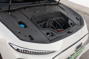 Formailag furcsa, ez a busa test a hatékonyságot szolgálja a tömpe, teljesen lekerekített orrával és a húsos testével. 0,24 ennek a formának a légellenállási együtthatója, ami az elég lapos e-tron GT-nél is jobb. Itt jönnek képbe az olyan trükkök, mint az első lökhárító oldalain lévő légelvezető elemek tökéletesre csiszolt formája és a padlólemez apró kialakításai - amik a Sportback és az Avant esetében eltérőek -, de az első kerekek előtti légterelők szerepe is fontos. Nem véletlenül töltött 1300 órát szélcsatornában a legalább ugyanennyi szimuláció után.